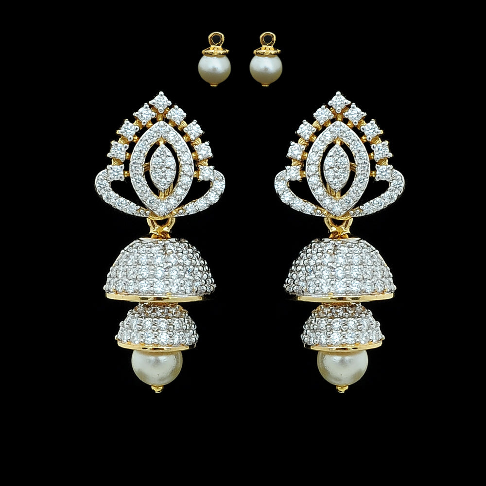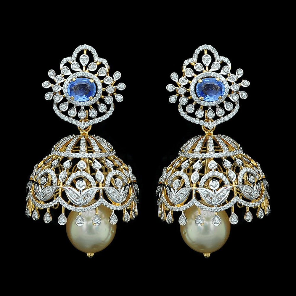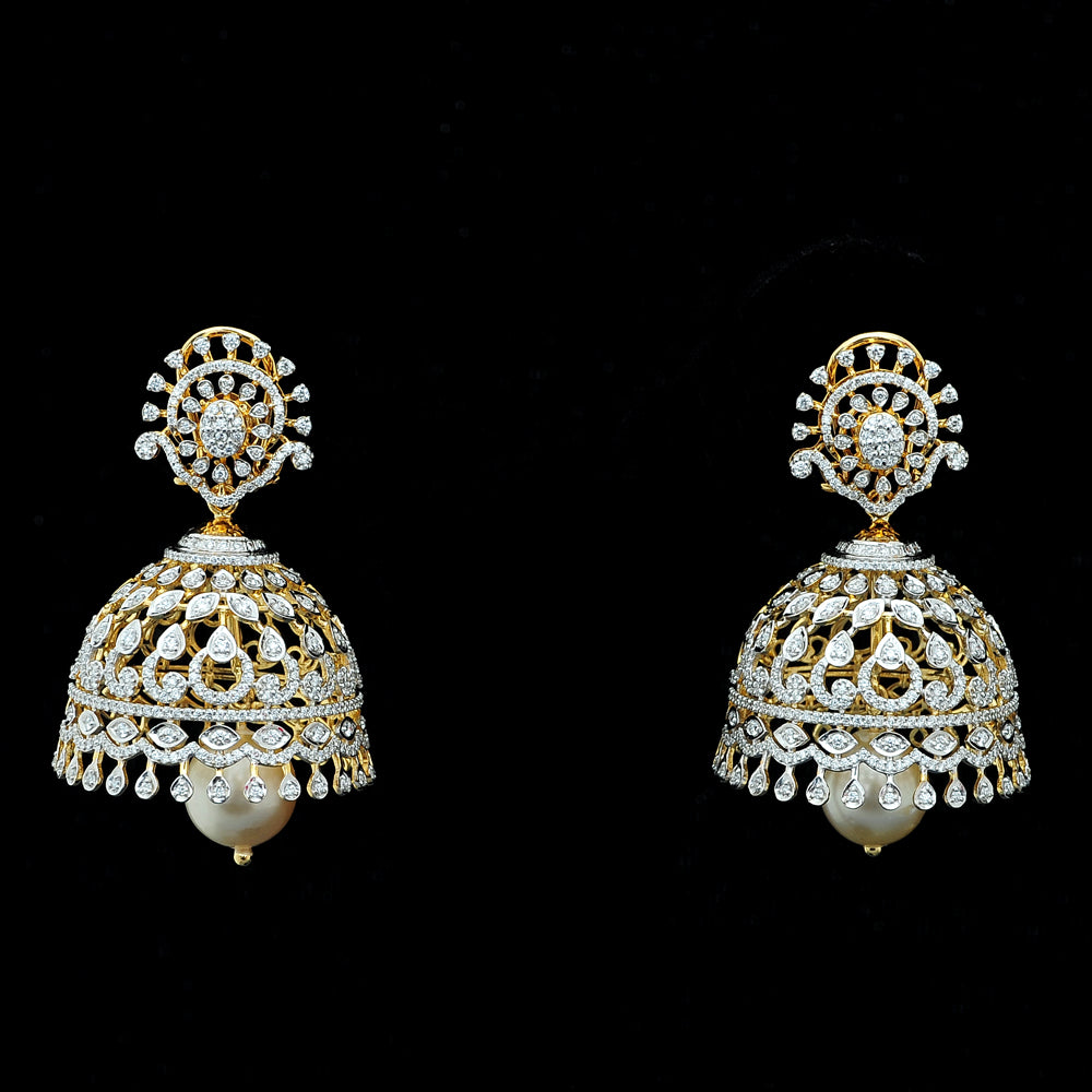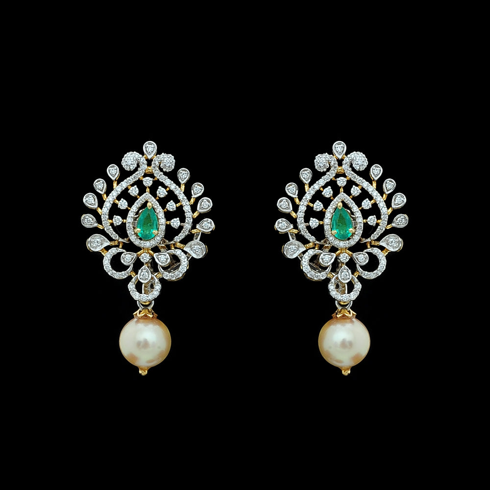 Our heartfelt congratulations to the beautifully dressed young princess as she shines on her Half Saree ceremony wearing our Diamond Choker Necklace, Long Diamond Necklace with a Pendant and Diamond Jhumkas with Natural changeable Emeralds/Rubies and Pearl Drops.