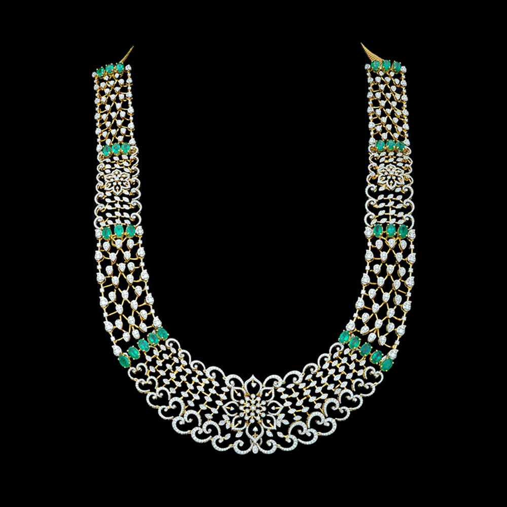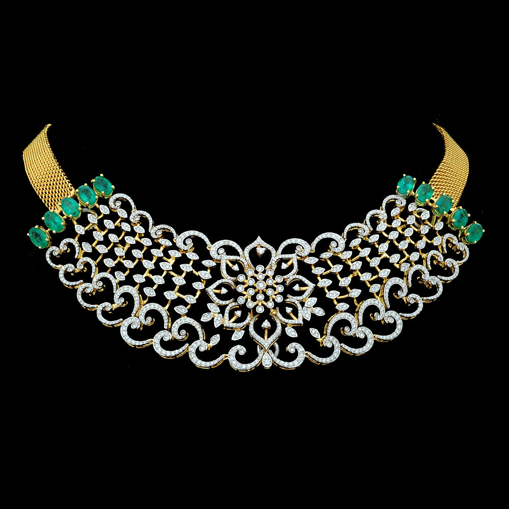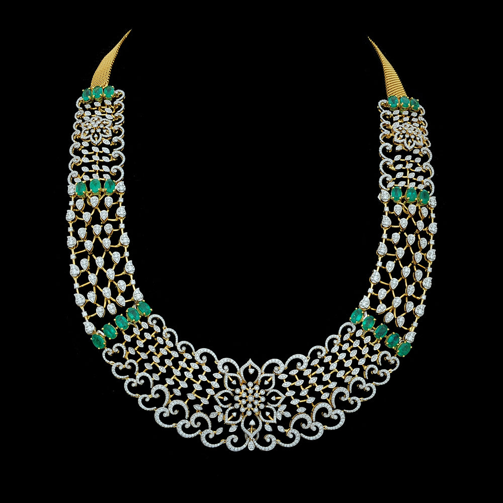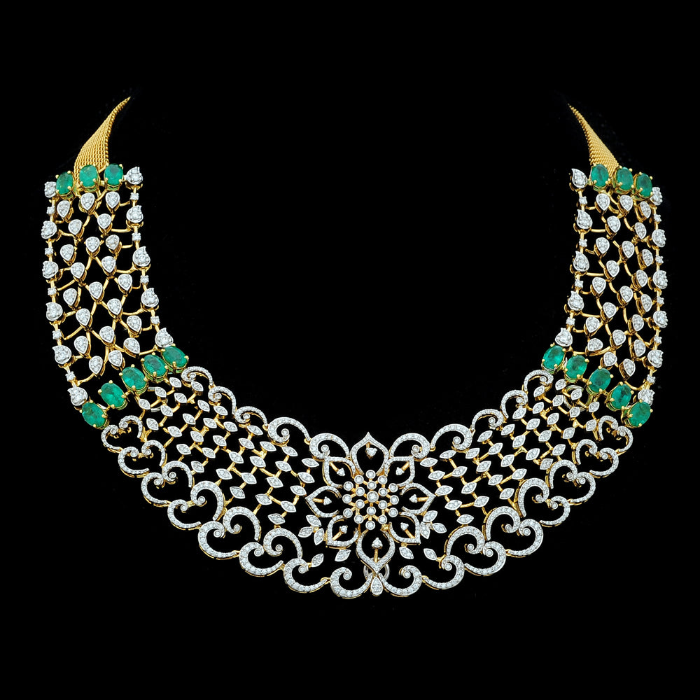 Our lovely client looks stunning in our Diamond Necklace set with Natural Emeralds.