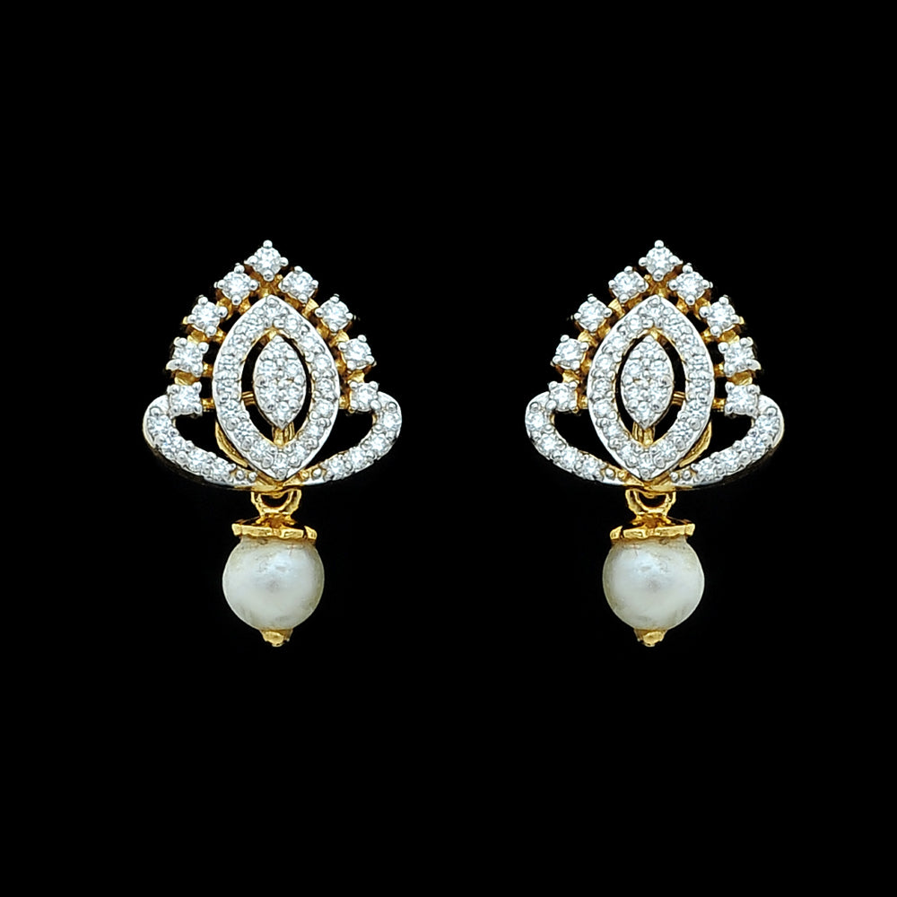 Dressed this Beautiful Angel on the occasion of Half Saree ceremony, wearing our Diamond Choker Necklace, Long Diamond Haaram with a Pendant, Diamond Jhumkas and Diamond Maang Tika with Natural changeable Emeralds/Rubies and Pearl Drops.