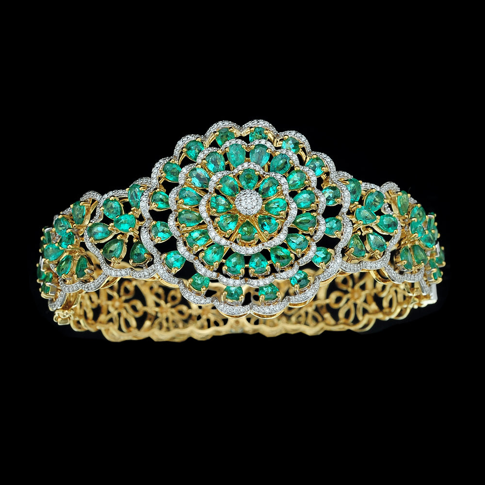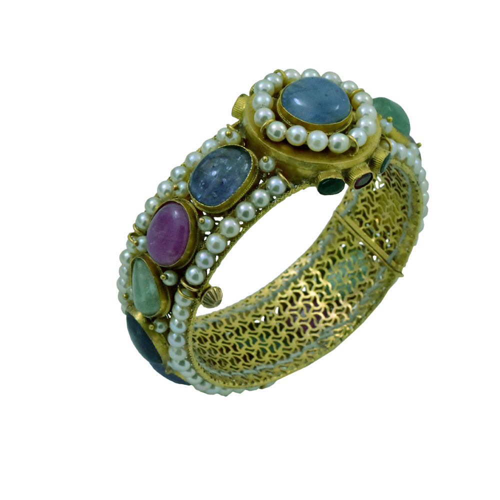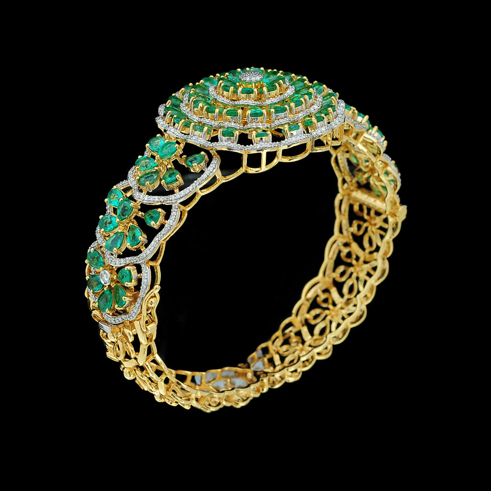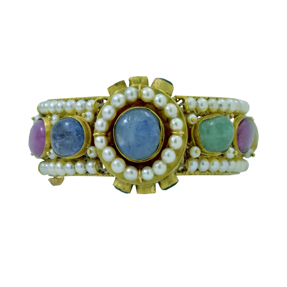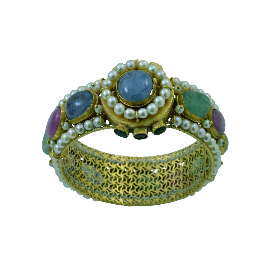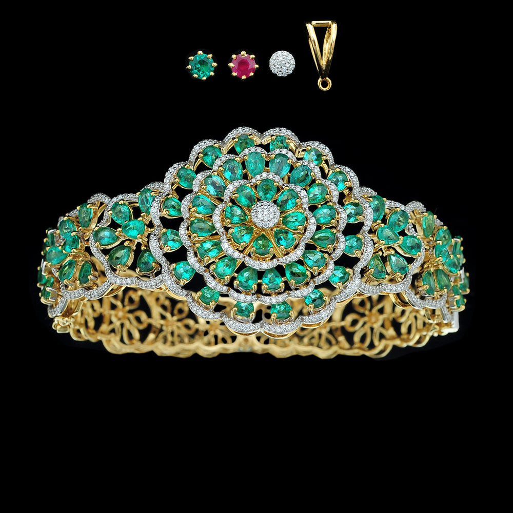 Diamond Bracelet With Natural Emerald And Ruby With Pearl