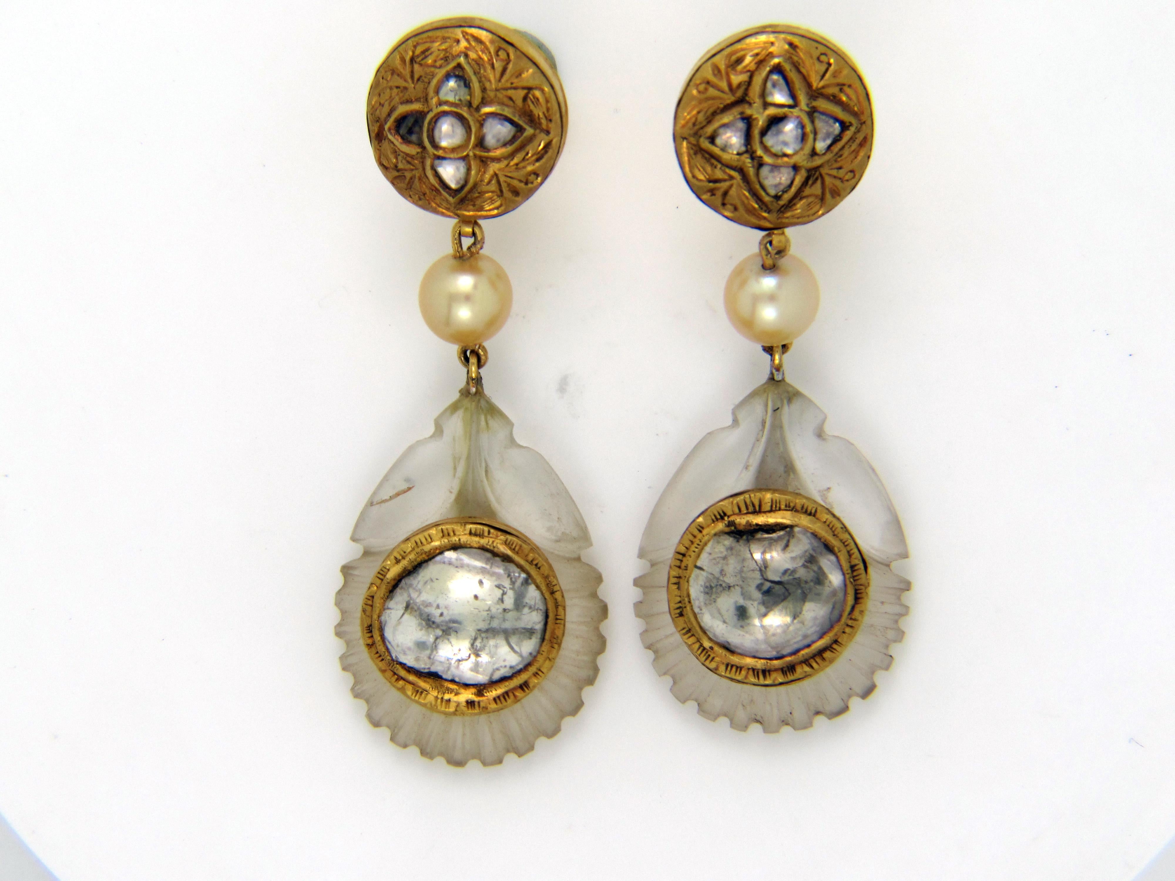 Diamond Earrings With Natural Emerald/Ruby With Pearl