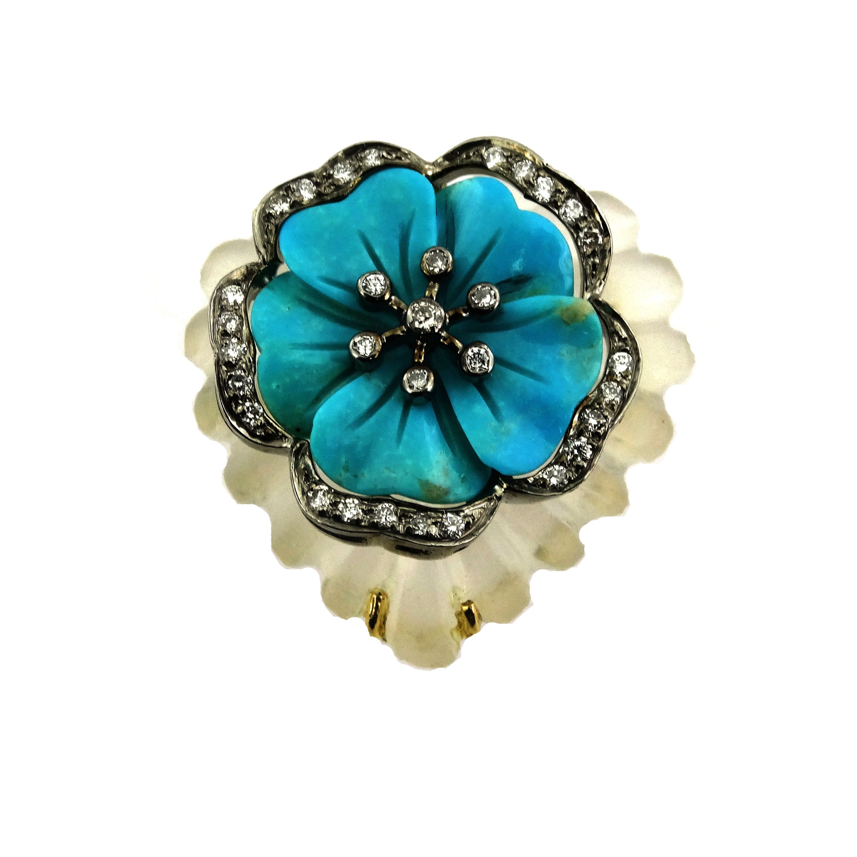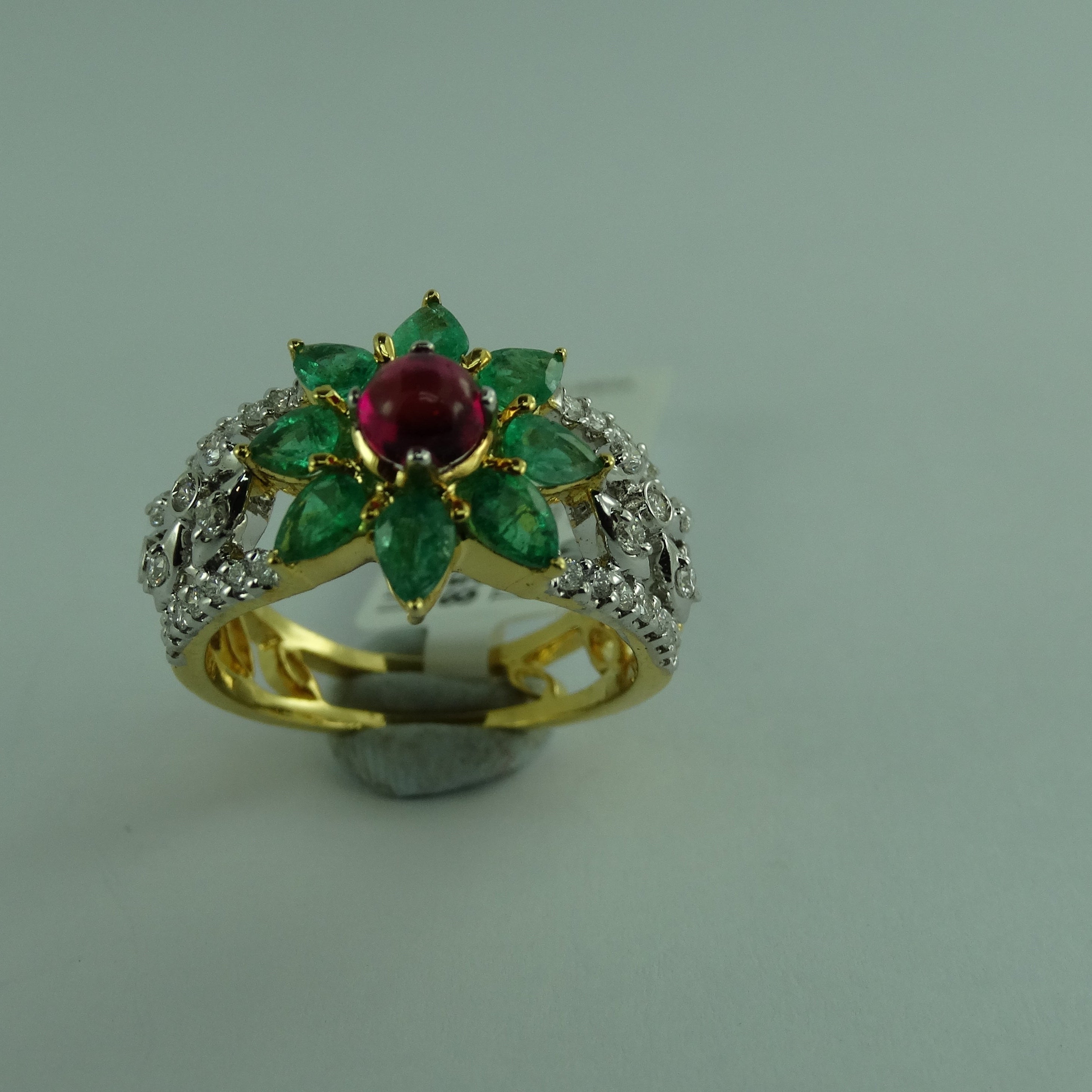 Statement Diamond Ring with Natural Emerald and Aquamarine